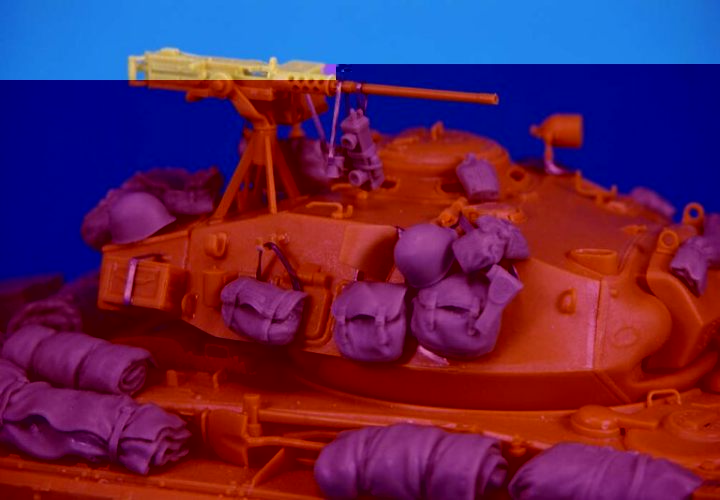 レジン製のキャンバスカバー砲塔バスケット、車体後部バスケット、M2機銃等の他、